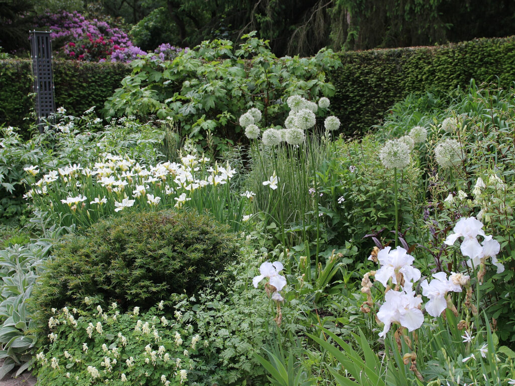 Weiter geht es nach Barneveld in der Provinz Gelderland in der Nähe von Utrecht. Hier hat das Ehepaar Lubbers im Verlauf von 25 Jahren einen besonderen, ein Hektar großen Garten nach englischen Vorbildern mit verschieden Gartenräumen entwickelt, den Beukenhof. 750m Buchenhecken gliedern die Räume, bieten Sicht- und Windschutz für verschiedene Staudenbeete, deren Pflanzen oft nach Farbthemen zusammengestellt sind. Eine exzellente Auswahl an Bäumen und Sträuchern und tausende Blumenzwiebeln bieten attraktive Gartenbilder rund ums Jahr. Die Hausherrin hat 5 Jahre ihres Berufslebens als rechte Hand von Rob Herwig gearbeitet, einem der bekanntesten niederländischen Gartenbuchautoren. Ein selbstgebautes Gewächshaus, ein Teich und ein großer Obstgarten sind weitere Highlights in diesem Garten.