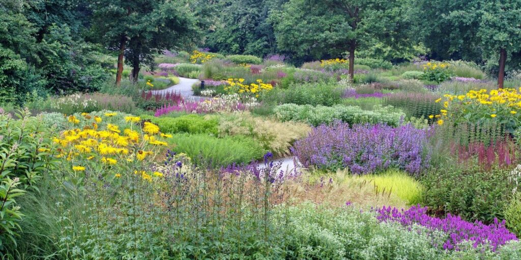 Diese Tour hat zwei berühmte Parkanlagen im Ruhrgebiet zum Ziel. Aber natürlich geht es hier nicht nur um alte Baumexemplare und weite Rasenflächen. Im Maxipark in Hamm hat der Niederländer Piet Oudolf eine seiner größten Staudenpflanzungen in Deutschland geschaffen. Die organisch geformten Beete bilden ein Staudental im Hauptteil des Parks.